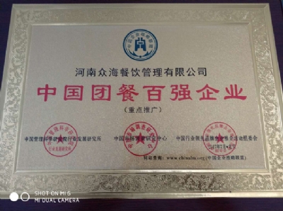 • 18-02-10熱烈祝賀河南眾海餐飲管理有限公司榮獲河南餐飲與飯店協(xié)會(huì)團(tuán)餐委